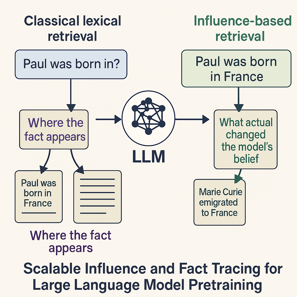 Figure: Difference between the classical lexical retrieval and the influence based retrieval for large language models