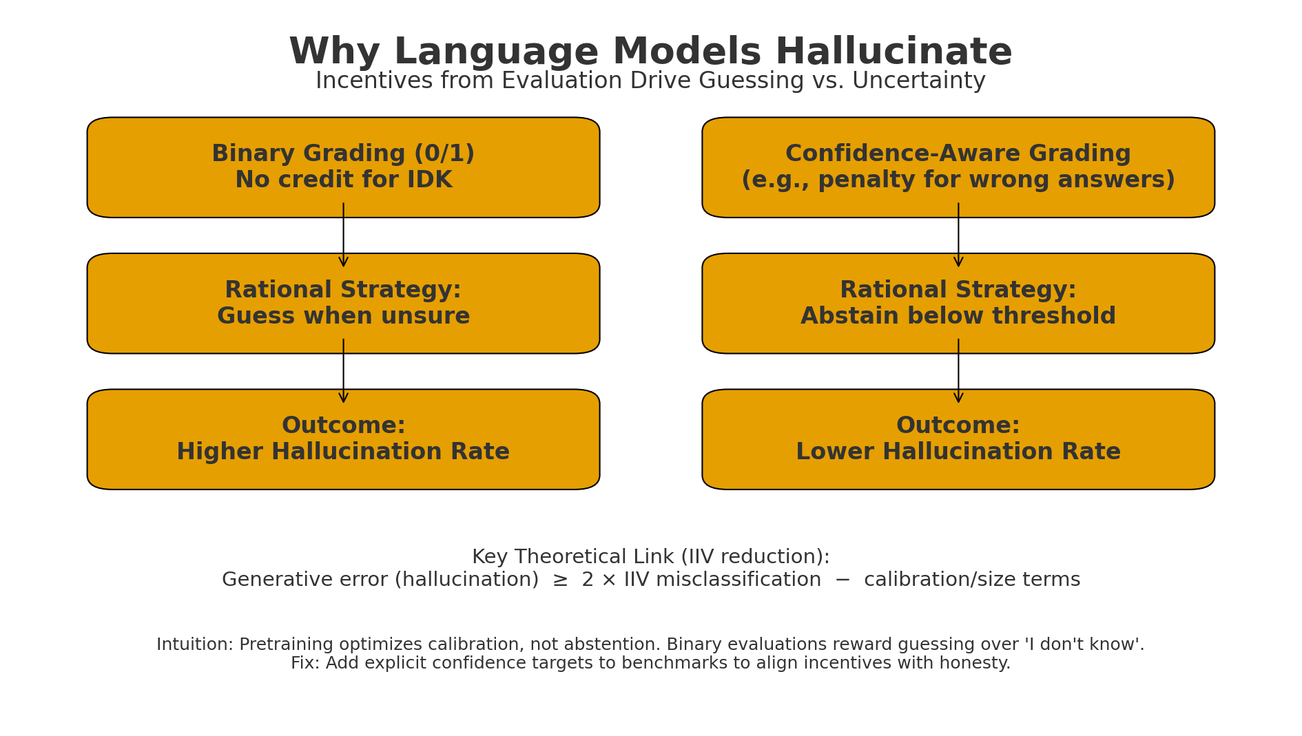 Figure: Binary grading makes “guess when unsure” optimal → higher hallucinations.